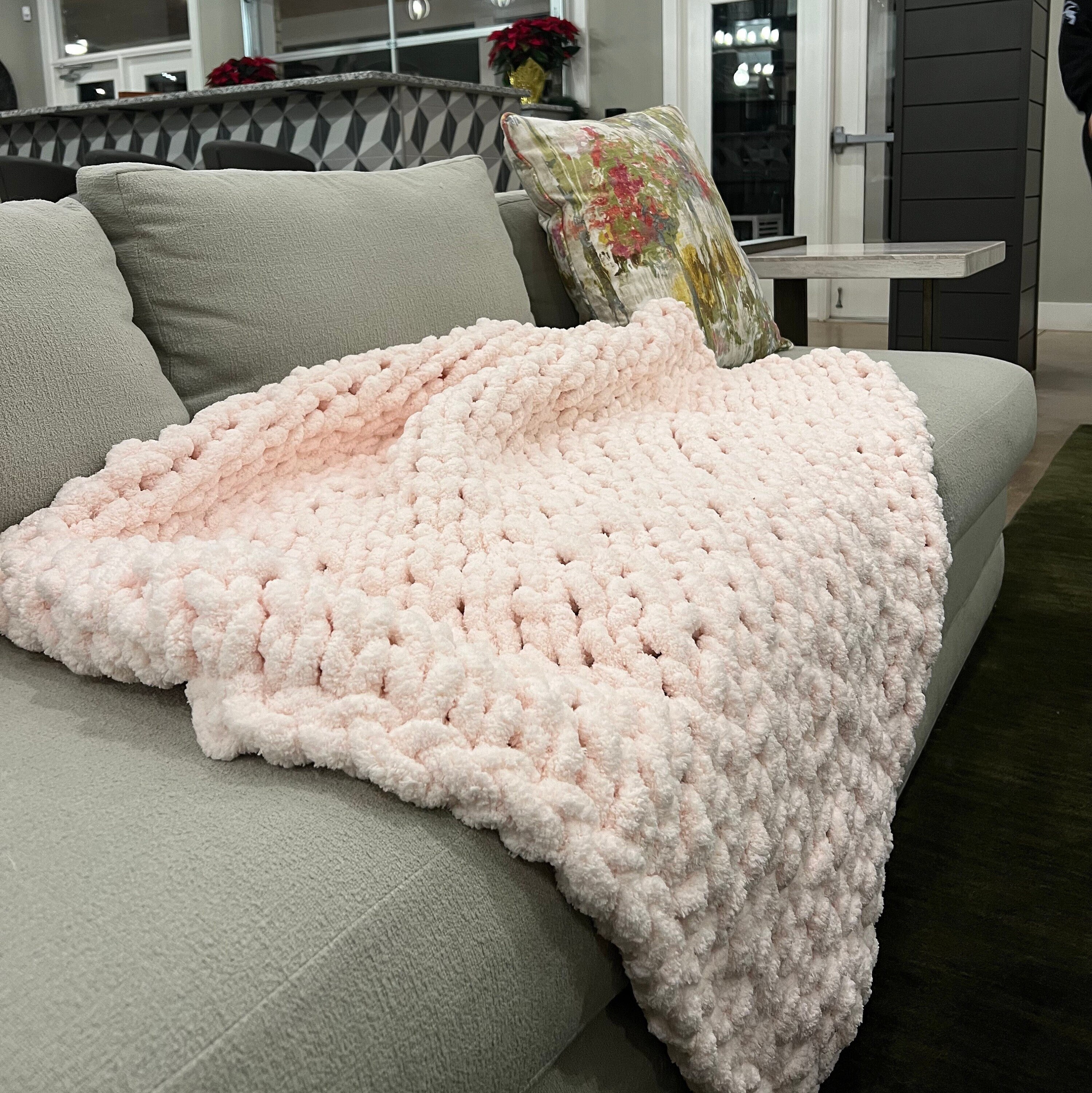 Chunky Knit Blanket Super Chunky Mink Knit Throw Blush Pink Etsy